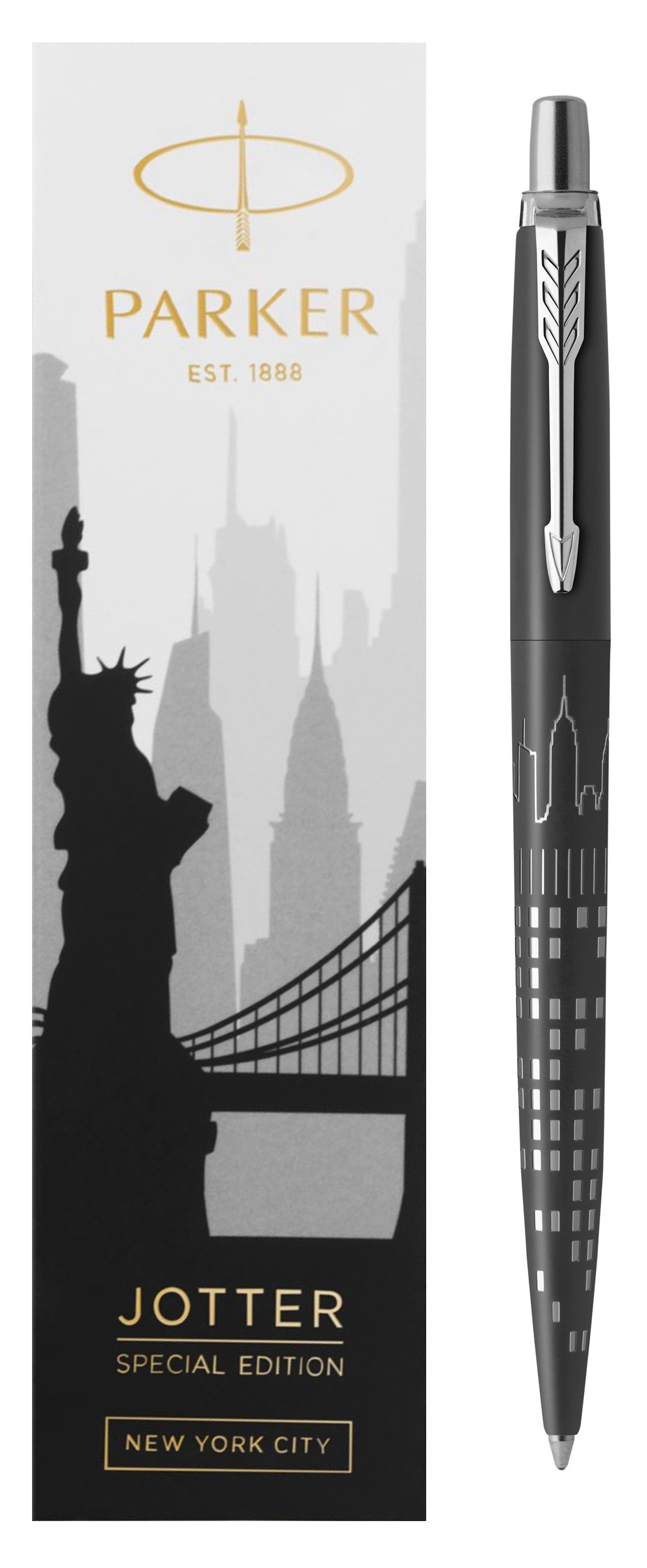 Ручка шариковая Parker Jotter New York Black CT от официального дилера Parker в Обнинске. Вы можете дополнительно заказать гравировку, которая подчеркнет Вашу оригинальность и придаст памятность статусному подарку. Все ручки Паркер поставляются в фирменном футляре.