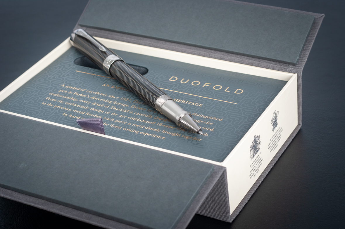 Ручка роллер Parker Duofold Prestige Centennial Black Chevron CT от официального дилера Parker в Обнинске. Вы можете дополнительно заказать гравировку, которая подчеркнет Вашу оригинальность и придаст памятность статусному подарку. Все ручки Паркер поставляются в фирменном футляре.